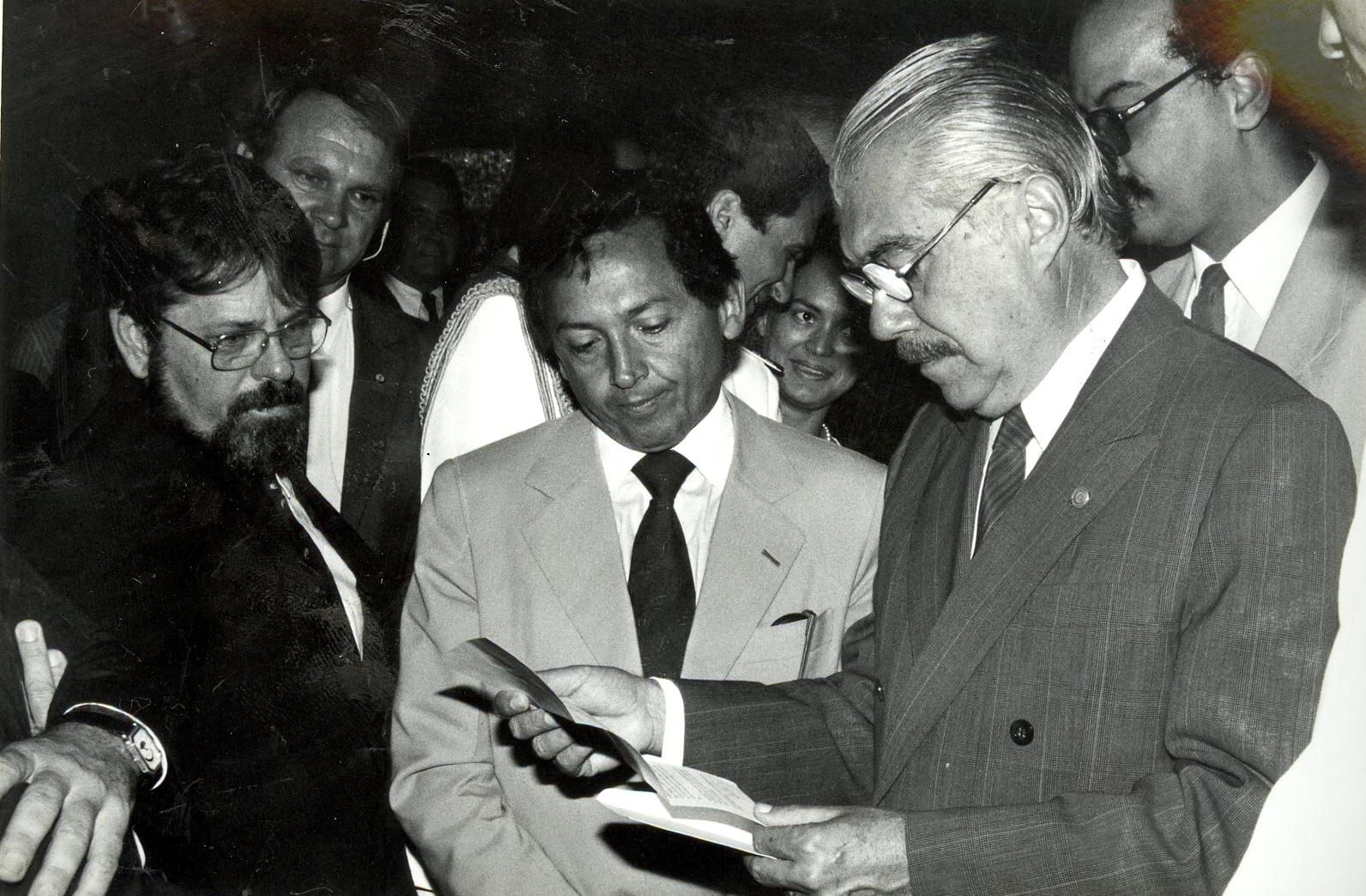 Visita do então Presidente da República, José Sarney, à sede do Ibama, por ocasião do 1º aniversário do IBAMA.