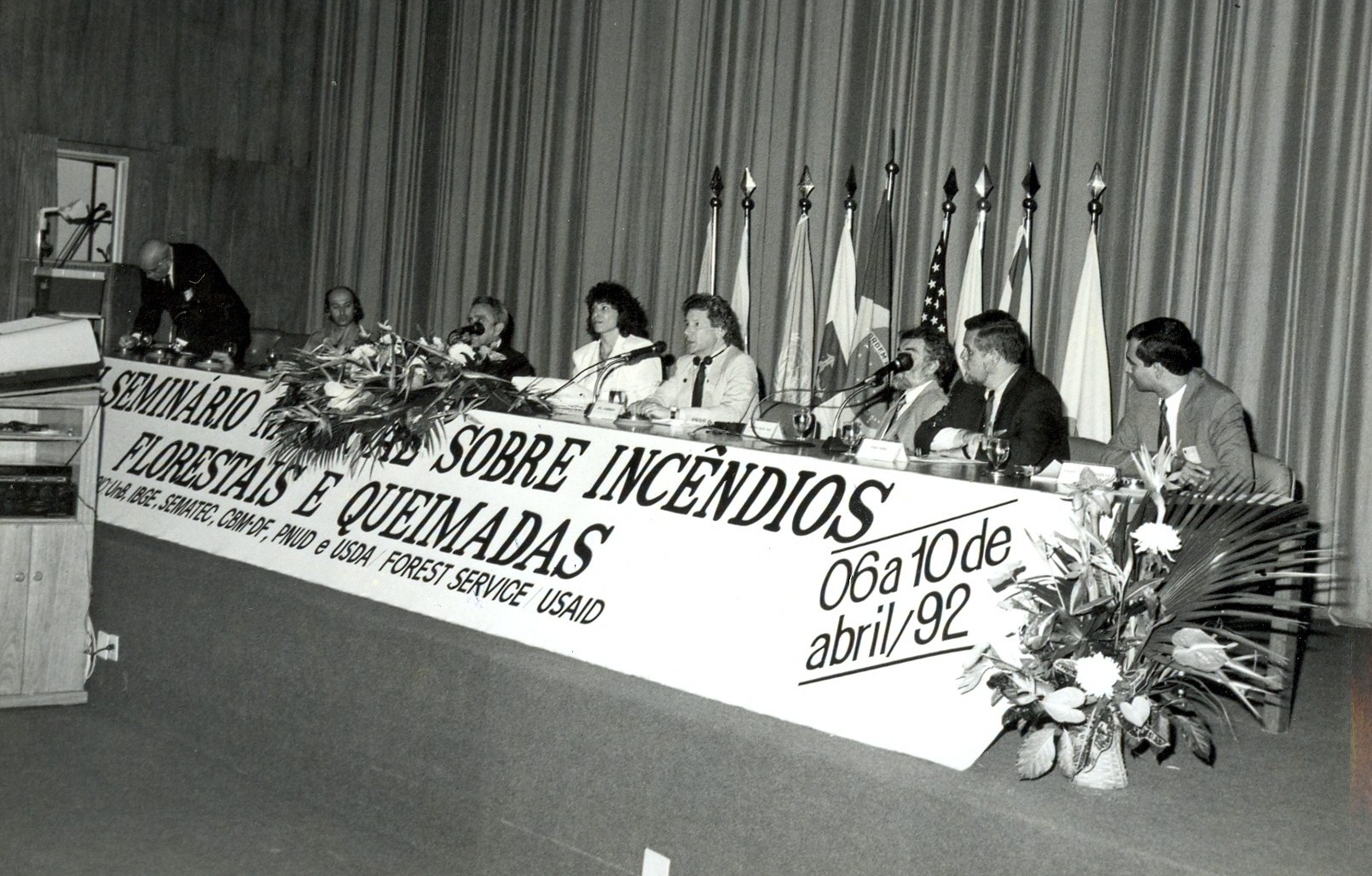 1º Seminário Nacional sobre incêndios florestais e queimadas realizados no Auditório da Telebrás, Participantes: IBAMA, SEMATEC, UNB, CRM-DF, PNUD e USDA FOREST SERVICE USAID, em 10 de abril de 1992.