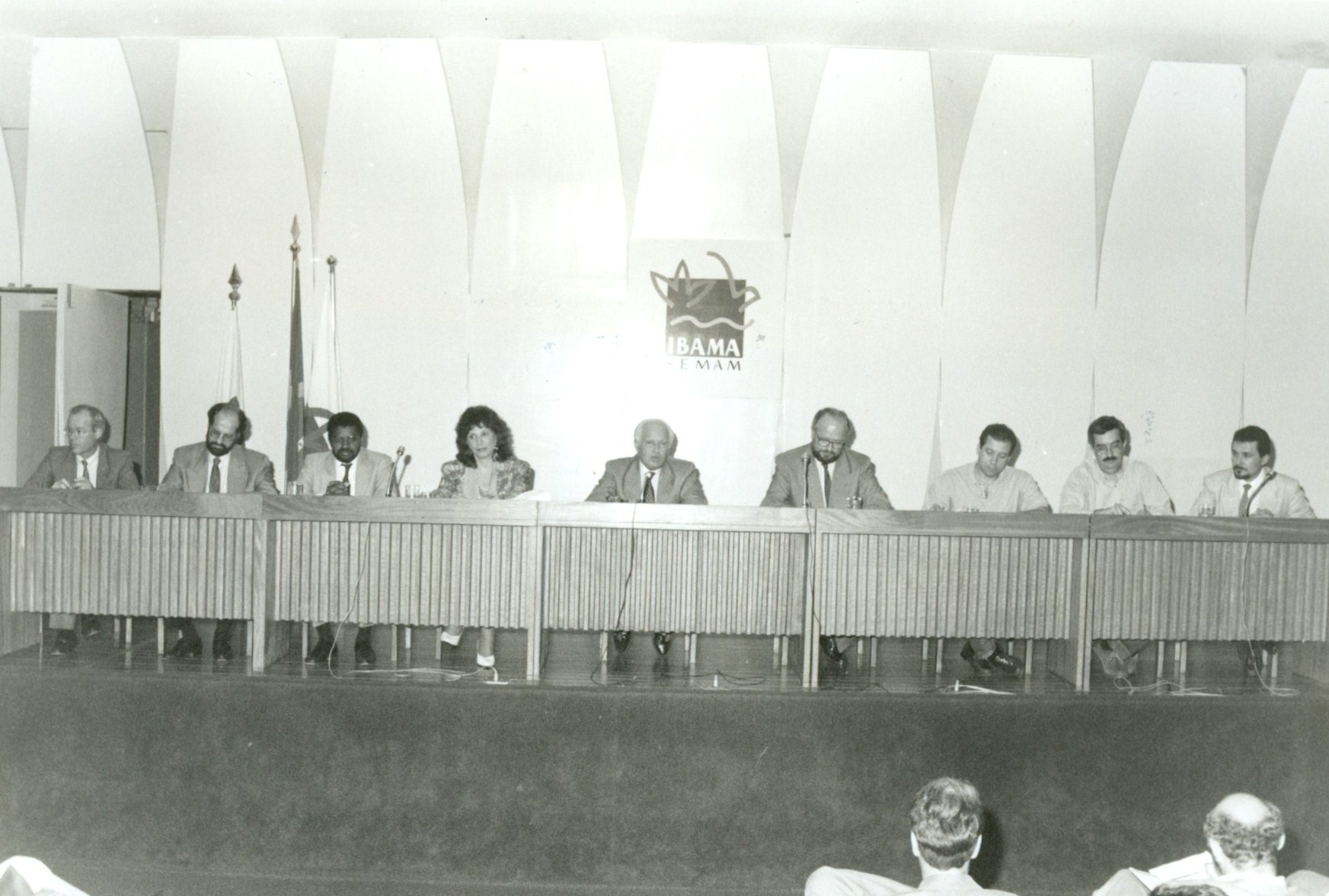 Presidente do Ibama, Maria Tereza de Jorge Pádua e do Sec. de Meio Ambiente Prof. José Goldemberg e a direção do Ibama na reunião Ext. do CONAMA, em 28 de Abril de 1992.