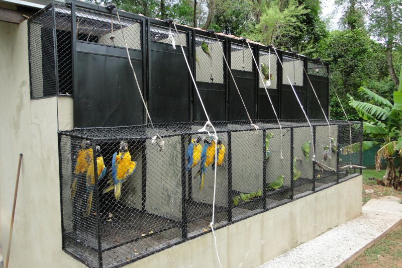 Araras-canindé (Ara ararauna) e papagaios (Amazona sp) | Centro de Triagem de Animais Silvestres - CETAS - Mato Grosso do Sul/MS
